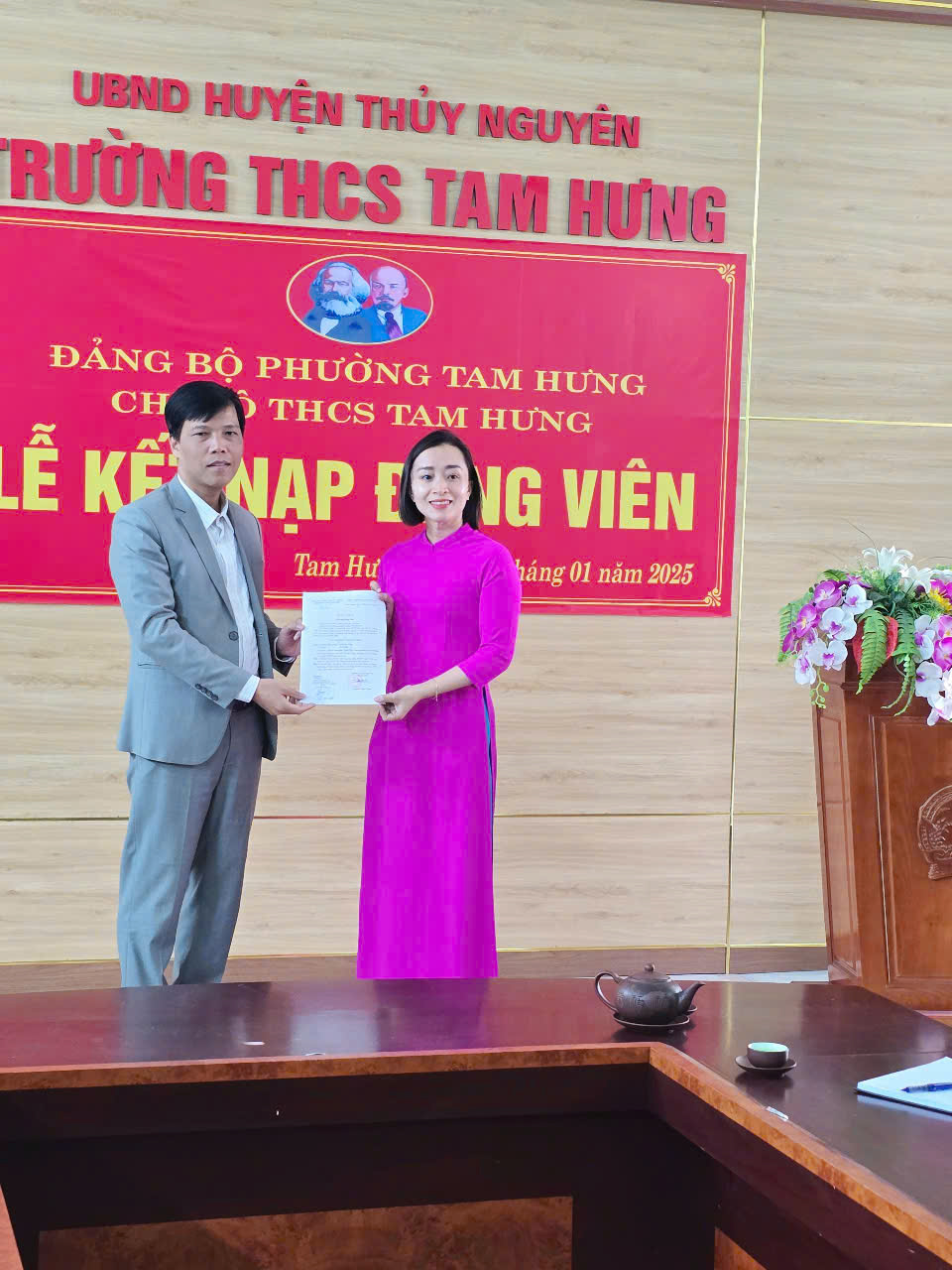 Đến dự với buổi lễ có đ/c Vũ Tiến Lực - Phó Bí thư thường trực Đảng ủy phường Tam Hưng, đ/c Bí thư đại diện cấp ủy chi bộ, các đ/c Đảng viên trong chi bộ trường THCS Tam Hưng.