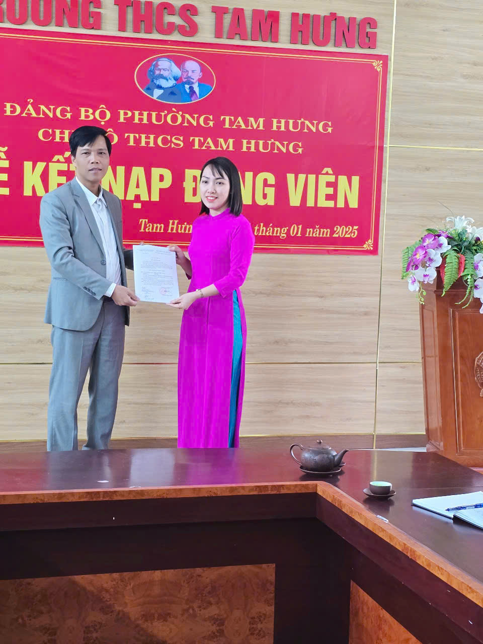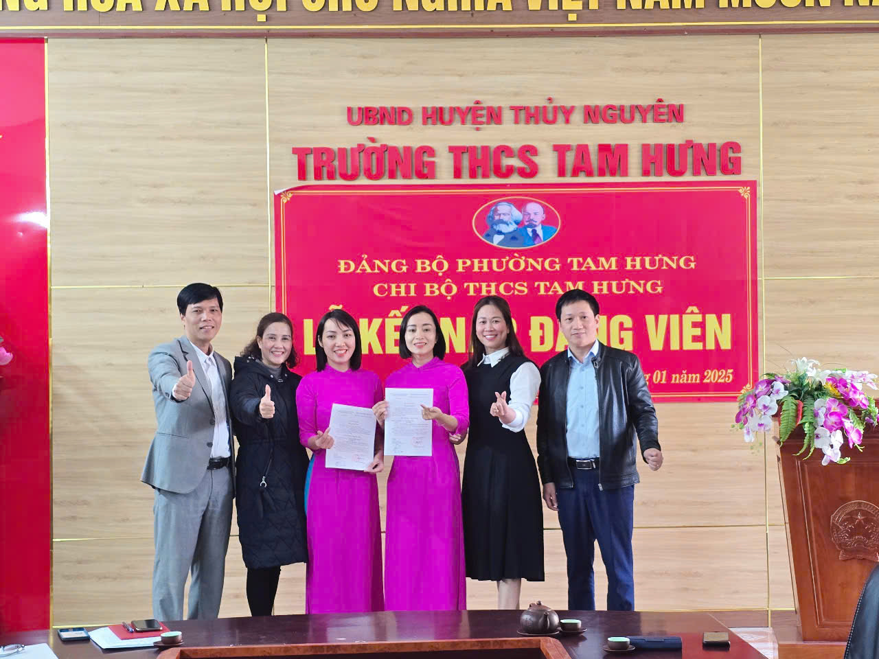 Thực hiện Điều lệ Đảng và các quy định của Trung ương về việc kếp nạp Đảng viên mới, sáng ngày 14/1/2025, được sự đồng ý của Đảng ủy phường Tam Hưng, Chi bộ trường THCS Tam Hưng đã tổ chức lễ kết nạp Đảng viên mới cho 2 quần chúng Lưu Thị Liên và quần chúng Trần Thị Thùy Dung - đều là GV trường THCS Tam Hưng, nâng số lượng Đảng viên của chi bộ lên con số 21 đ/c.